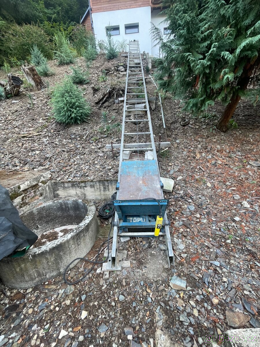 Stavební výtah, vrátek - TOP - [23.12. 2025]Stavební výtah 20m délka, regulační kloub, nástavce na role, solární panely...možnost do délky 30m.