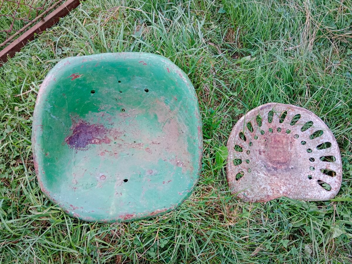 Prodám plechové sedačky na starší zemědělské stroje,500,-kus, děrovaná 400,-, zelená už není