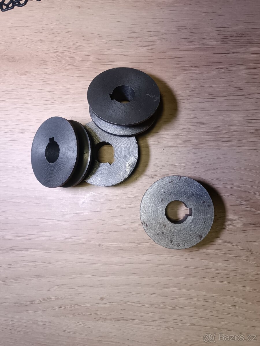 1) Řemenice na 1 klínový řemen s venkovním průměrem 58mm a středovou dírou 18mm tloušťka 16mm cena za řemenici 60kč k prodeji 4ks