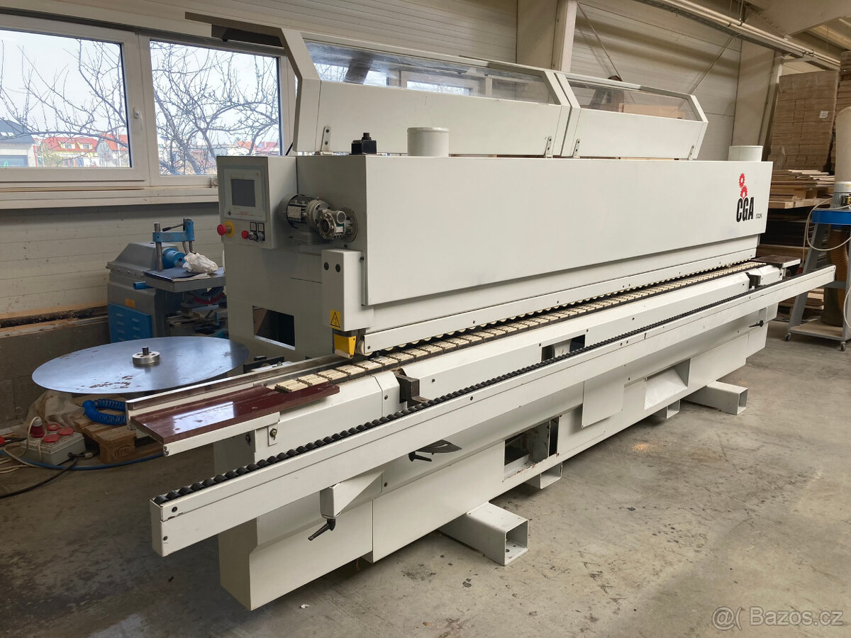 Použitá, automatická olepovačka hran s předfrézovací jednotkou. Robustní stroj určený zejména na masivní hrany, nákližky.