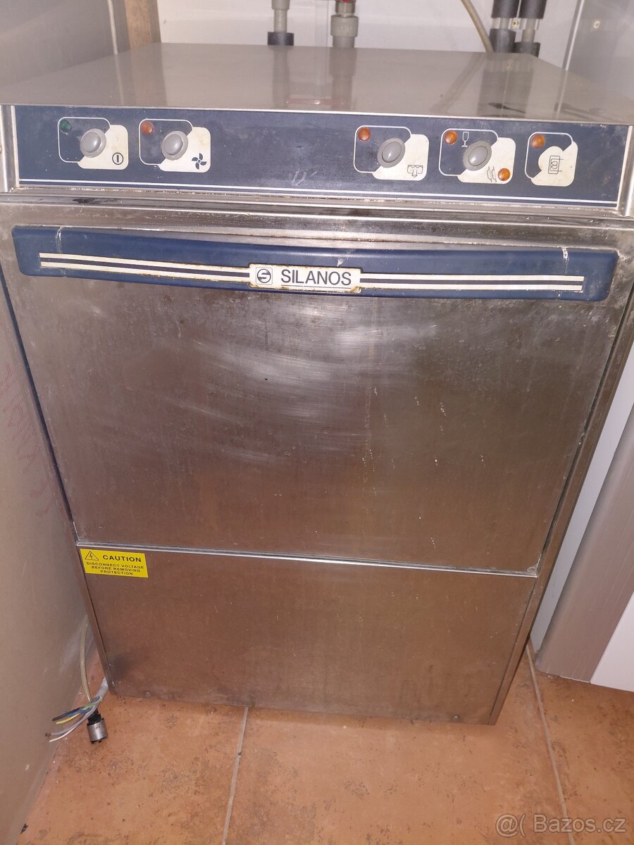 Prodám podbarovou funkční průmyslovou dvouplášťovou myčku nádobí SILANOS A670 včetně změkčovače, 400V, 2kW, cyklus 2 až 3 min., max. výška skla 310 mm