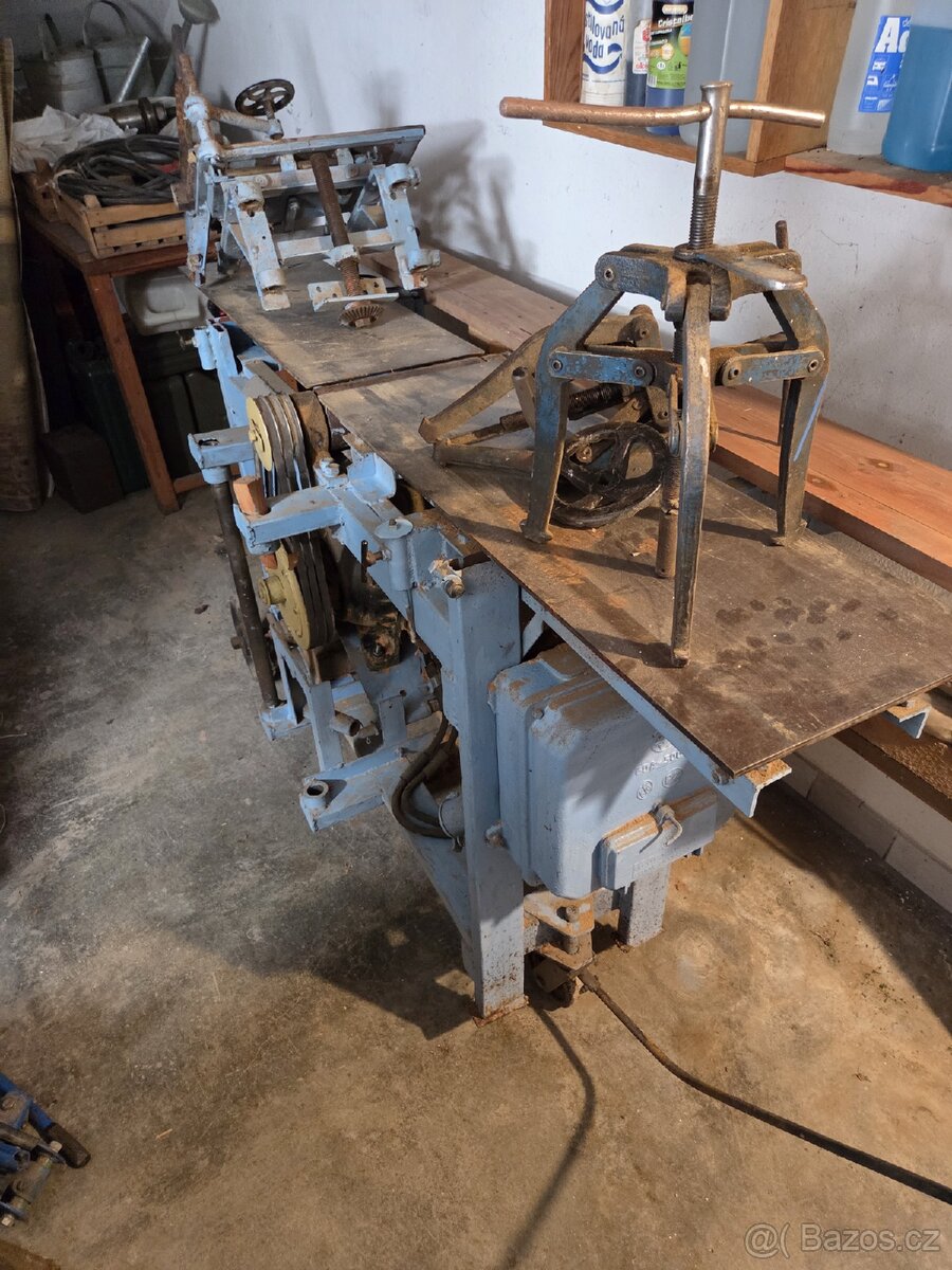 Kombinovaný stroj. Hoblovka a stolní pila s příslušenstvím - viz foto. Dlouhý stůl. Masivní ocelová konstrukce. 3 fázový motor. Bez protahu.