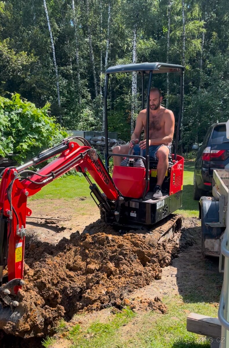 Nabízím k prodeji minibagr s dieselovým motorem o hmotnosti 1T Mimoose kopáni.Minibagr je úplně nový, žádné motohodiny. Pro bližší informace mě kontaktujte. Lžíce 20, 40, 80 svahová, hrábě, vrták 10,20,30 rychlo upínák v ceně!! Konečná cena 160000,-