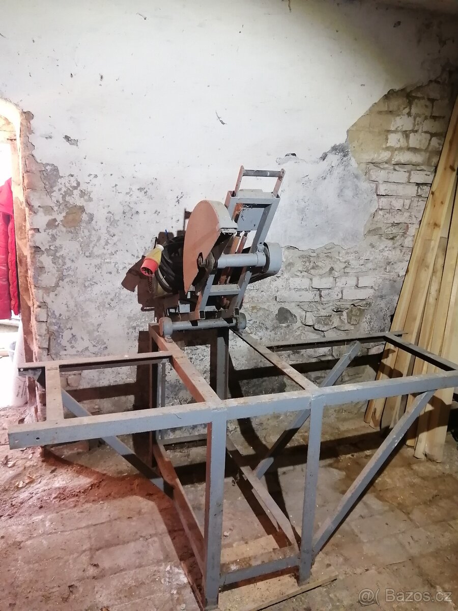 Prodám zkracovací pilu, kotoučová pila, motor 380v, 2,2kw 1400 ot., se stolem. Pila se vrací pružinou. Funkční. Velký prořezy,kotouč až 400mm.