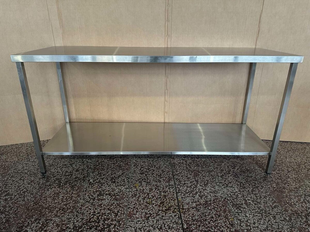 Nerezový stůl do prostoru s policí