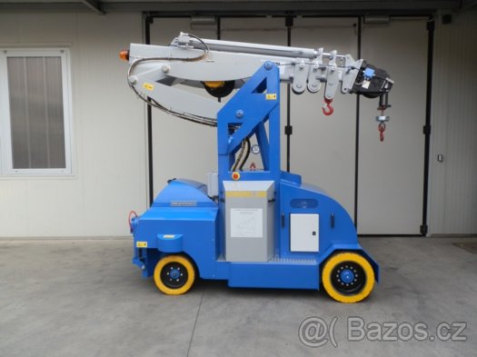 Mobilní elektrický jeřáb Gruniverpal MINIDREL 50B WVR. Nový, rok výroby 2017, nosnost 5.0t, výška zdvihu 7.5m, dodatečné rameno 1,0m, pohon kol 4x4, dálkové ovládání, gelové baterie. Záruka od výrobce 12 měsíců.