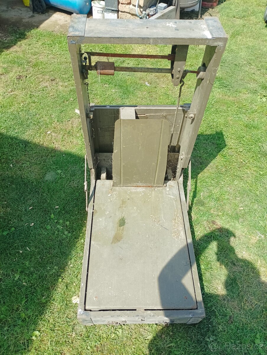 Prodám historickou vojenskou transportní přenosnou váhu mechanickou skládací bedna kufr