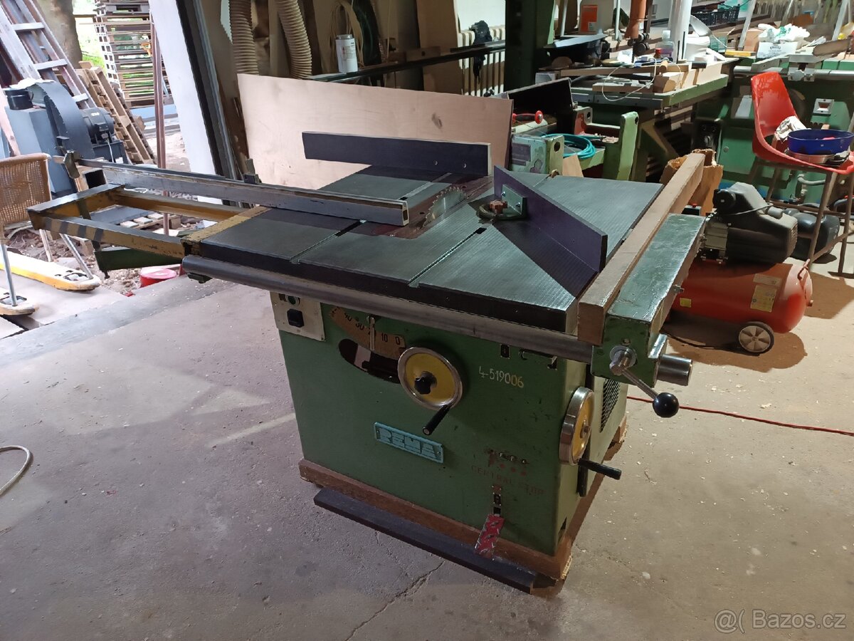 Prodám pilu "REMA", perfektní stav, 2x rybina ve stole, 2x úhlové pravítko, podélné pravítko + formátovací vozík. Kotouč průměr 400.
