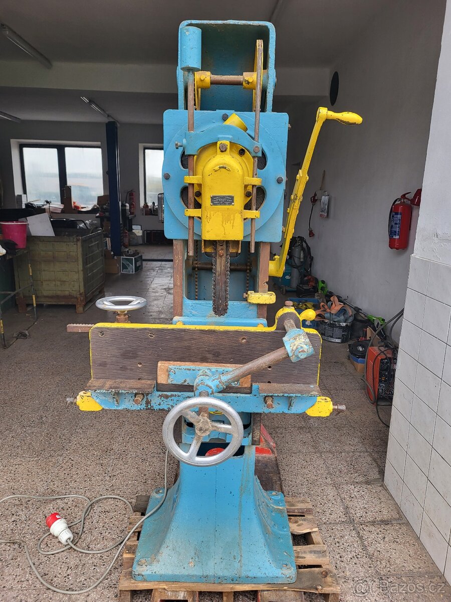 Prodám starší řetězovou dlabačku,německé výroby.horizontální posuv 30 cm svislý 17 cm,stavitelné dorazy.Horizontální pojezd je řešen přez hřebenové vedení,je to citlivější než na polských dlabačkách,kde se pohybuje stůl přez páku.Váha cca 400 kg.Podstavec stroje byl v minulosti opraven.Na stroji se nedělalo cca 10 let.Vše je plně funkční.Řetěz chce nabrousit.Je tam 16 mm síla.Bohužel ke stroji nejsou lišty ani řetězy,pouze co je na stroji.Nakládka zajištěna.