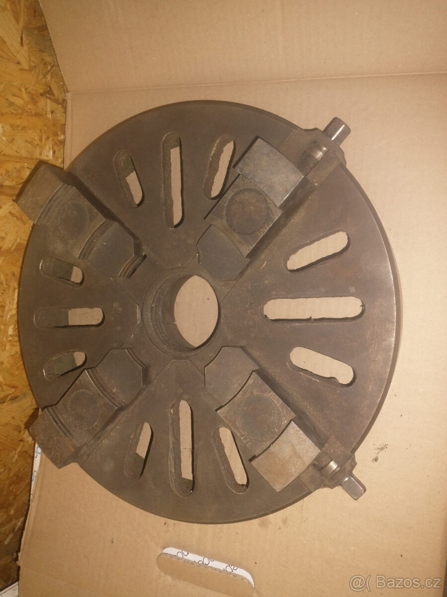 Prodám lícní desku na soustruh SV 18, má úpravu na zvětšení upínacího průměru (čelisti jdou více vyšroubovat ven).