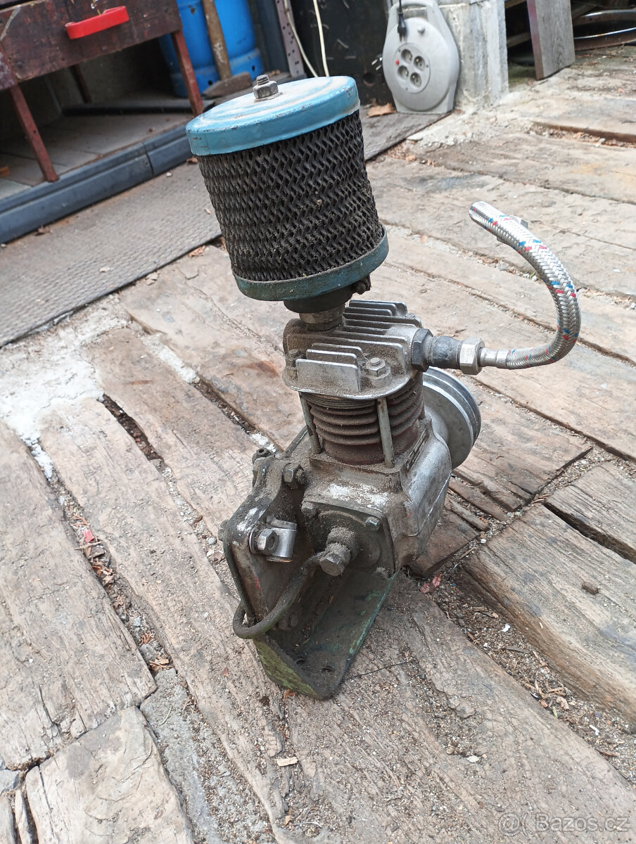 Kompresor - [23.12. 2025]Historický hospodský kompresor na litinovém podstavci + hardy spojka + odlučovač (plnič pneumatik Jikov, např. na Zetor apod.). Jde protočit rukou, kompresy má...