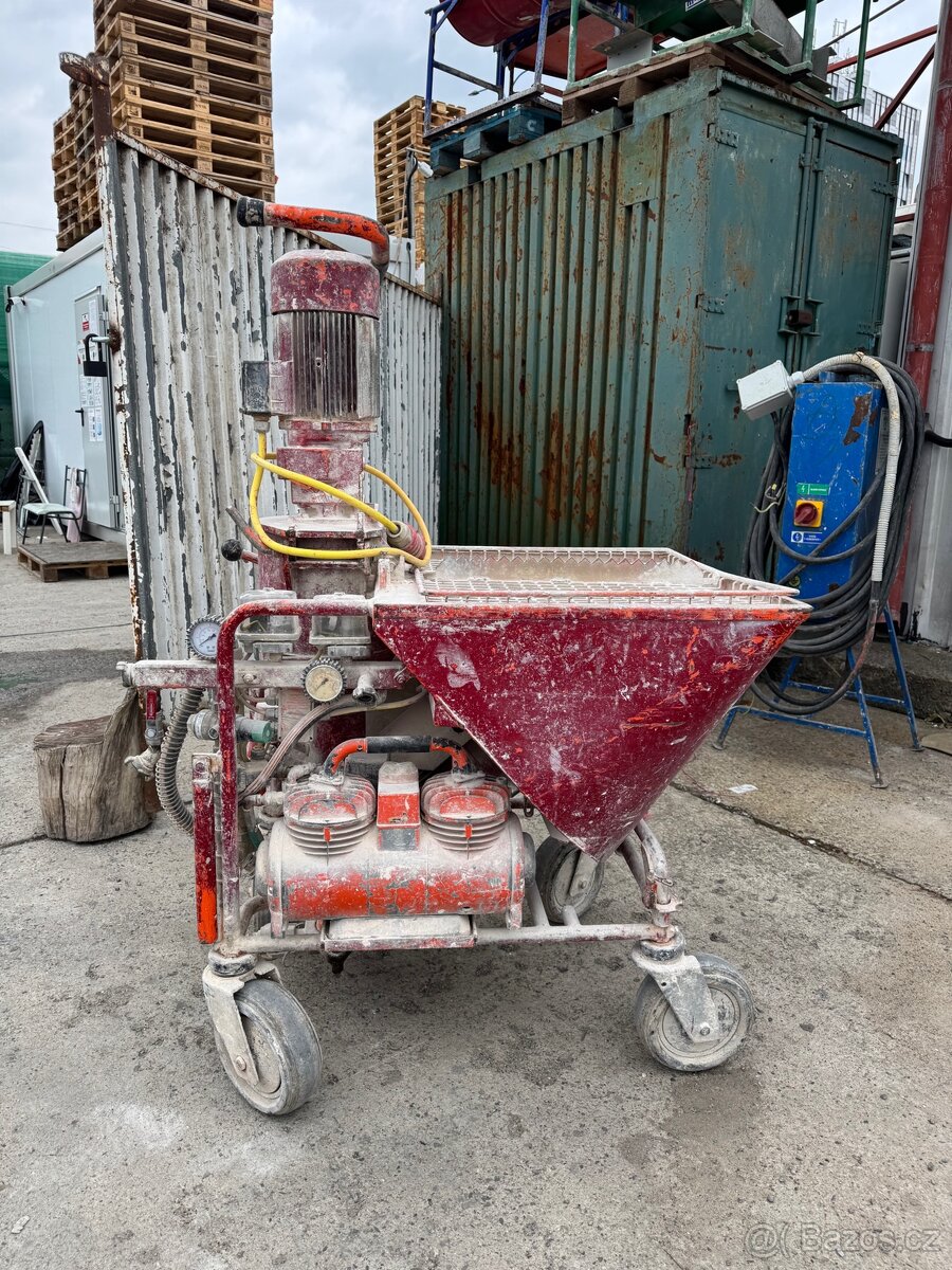 Součástí stoje je vybavení viz foto. (nová míchací hřídel, šnek PFT D4-3, pistole, hadice, kompresor, vodní čerpadlo)