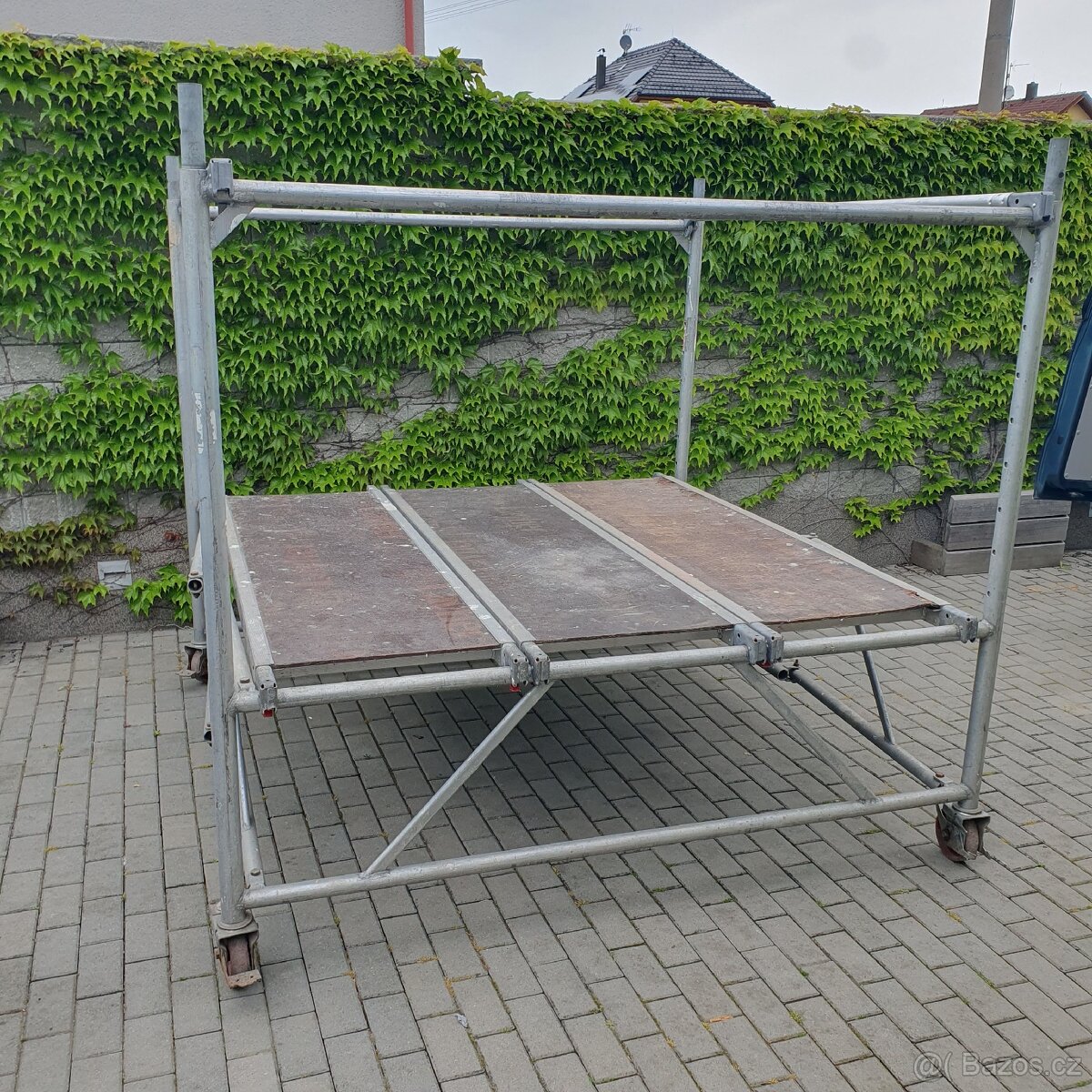lešení Staro Rollbock -Prefabrikované lešení s velkou pracovní plošinou Optimální pro rychlou práci na velkých plochách podhledů , montáž komponentů nebo instalace pod stropem. Dostatek volného pohybu a prostoru, např. pro uložení nářadí a materiálu. -verze Základní rám: z hliníku. Zábradlí a mezizábradlí: z hliníku, snadno se zacvakávají. Pracovní police: z hliníkového rámu a překližkové vložky. Otočná kolečka: Ø 150 mm, s centrickým zavedením zatížení po uzamčení pro zvláštní stabilitu. Trubka stojanu: 1,95 m dlouhá, s otvory po 110 mm pro nastavení výšky. -Technické údaje Pracovní výška: až 3,90 m. Plocha pracovní plošiny: 1,95 x 1,95 m. Přípustné živé zatížení: 1,5 kN/m² (skupina lešení 2).