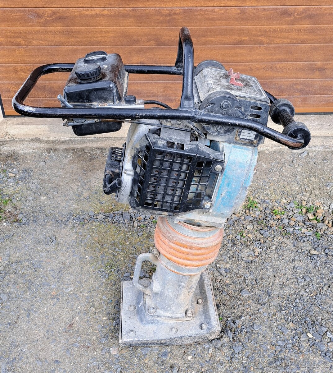 Nabízím k půjčení - vibrační pěch Bomag BT65, 67 kg, dvoutakt 2,6 kW - nutno ředit benzín olejem.