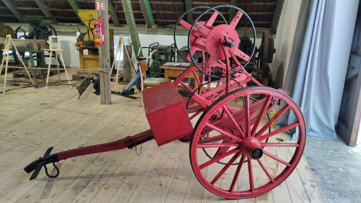 Masivní hasičský loukoťový naviják. Využití k historické hasičské stříkačce. Velmi dobrý stav.
