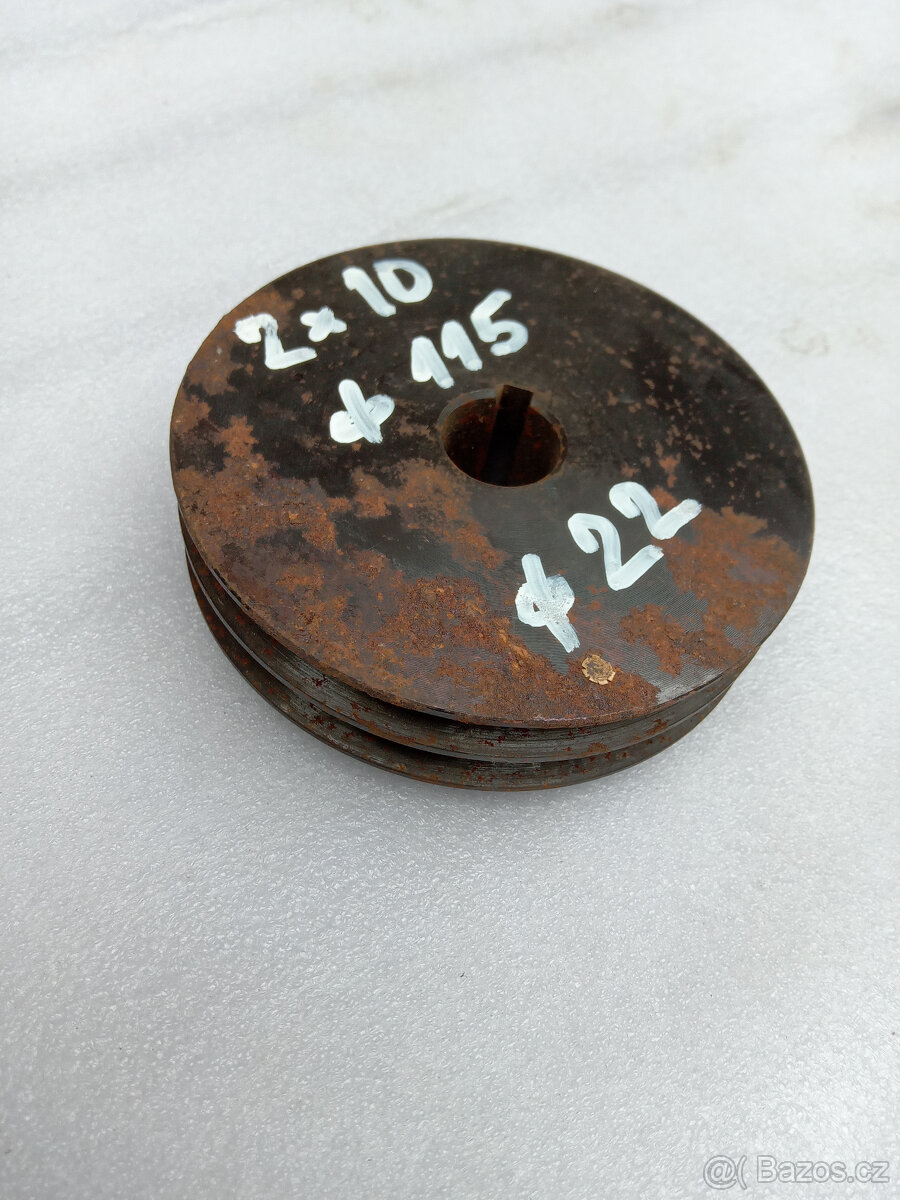 Řemenice - [25.1. 2026]Řemenové kolo s duralu o průměru 290 mm.Otvor pro hřídel průměr 22 mm,drážka na klínek 5 mm a drážky na řemeny rovné neopotřebované široké 13 mm.Kolo nepoškozené a rovné.Mohu poslat poštou.