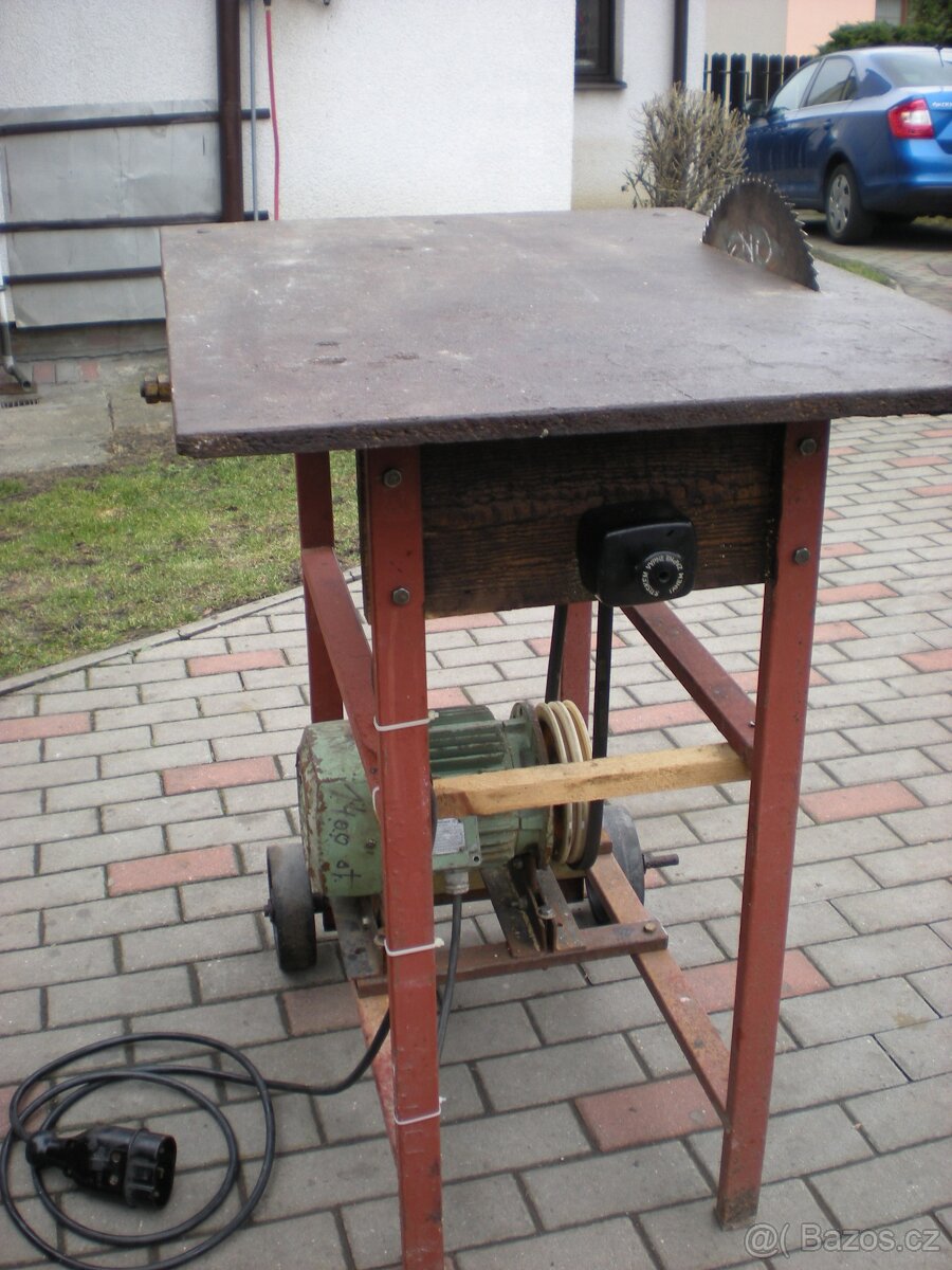 Prodám stroj pro domácího kutila, dva v jednom, cirkulárka + brusku, hřídel s řemenem uprostřed, na pravé straně má hřídel průměr 30mm na osazení pilového kotouče a závitem M20 a na levé straně má hřídel průměr 20mm na osazení brusného kotouče a se závitem M16, výkonný motor 1,5 kW, 2800ot, stůl výklopný s aretací, příruční schránka na potřebné nářadí, výška stolu 90 cm, pilový kotouč až 40 cm,