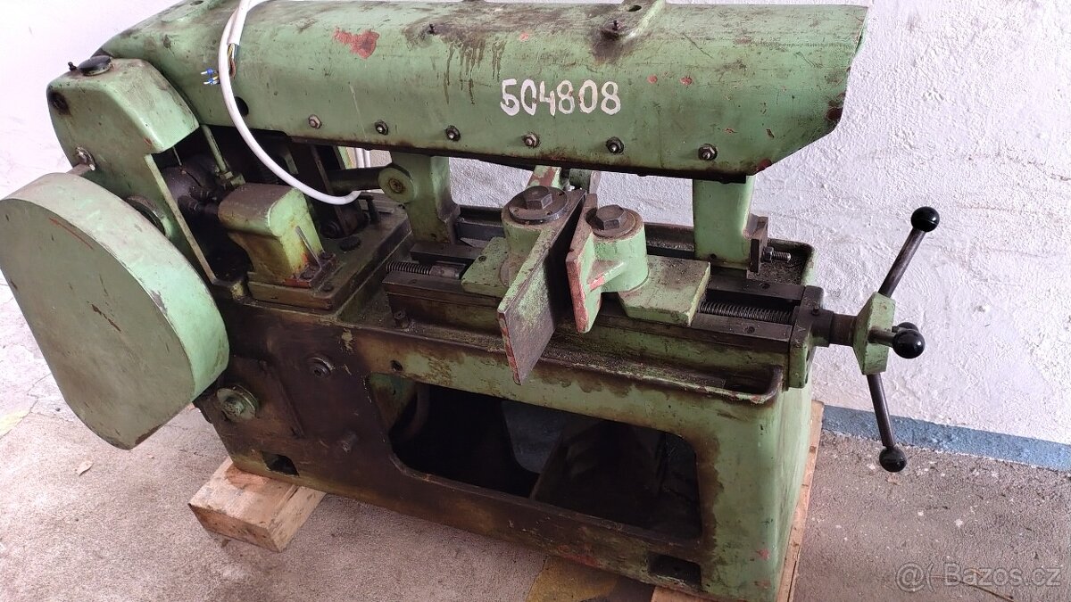 Povodí Ohře, státní podnik, nabízí výše uvedený stroj. Zařízení je vyr.r. 1968, ale funkční. Určeno na řezání kovů o rozměrech až 180mm (hranaté) nebo 200 mm (kulatina).