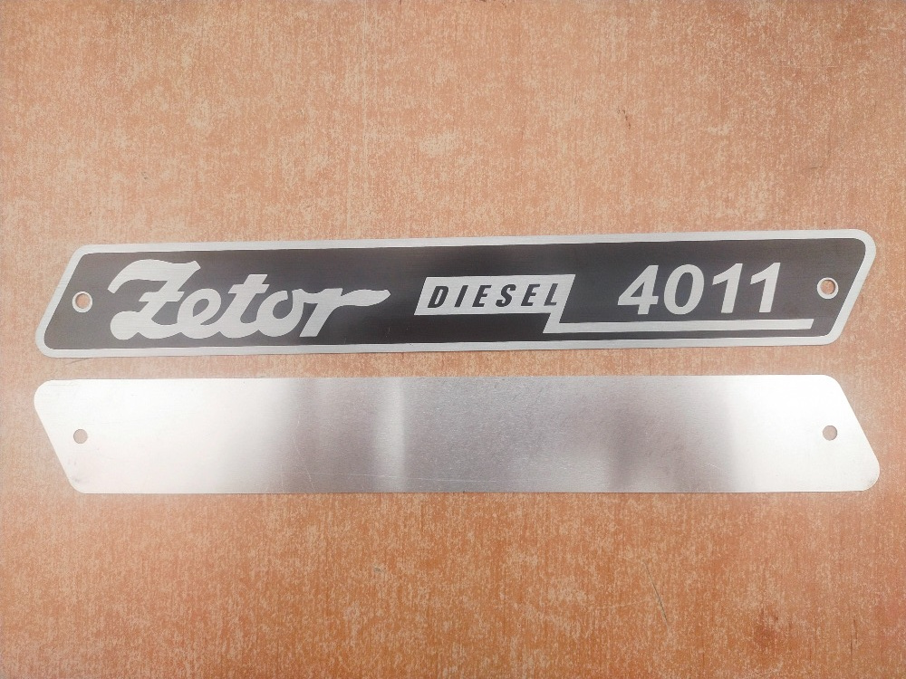 Dobrý den, prodám nové hliníkové nápisy na Zetor 4011. Plech Al99,5 tl. 0,5 mm. Cena 220,- Kč za kus. Možnost osobního odběru a nebo poslání na dobírku. Pěkný den, Mikeš.