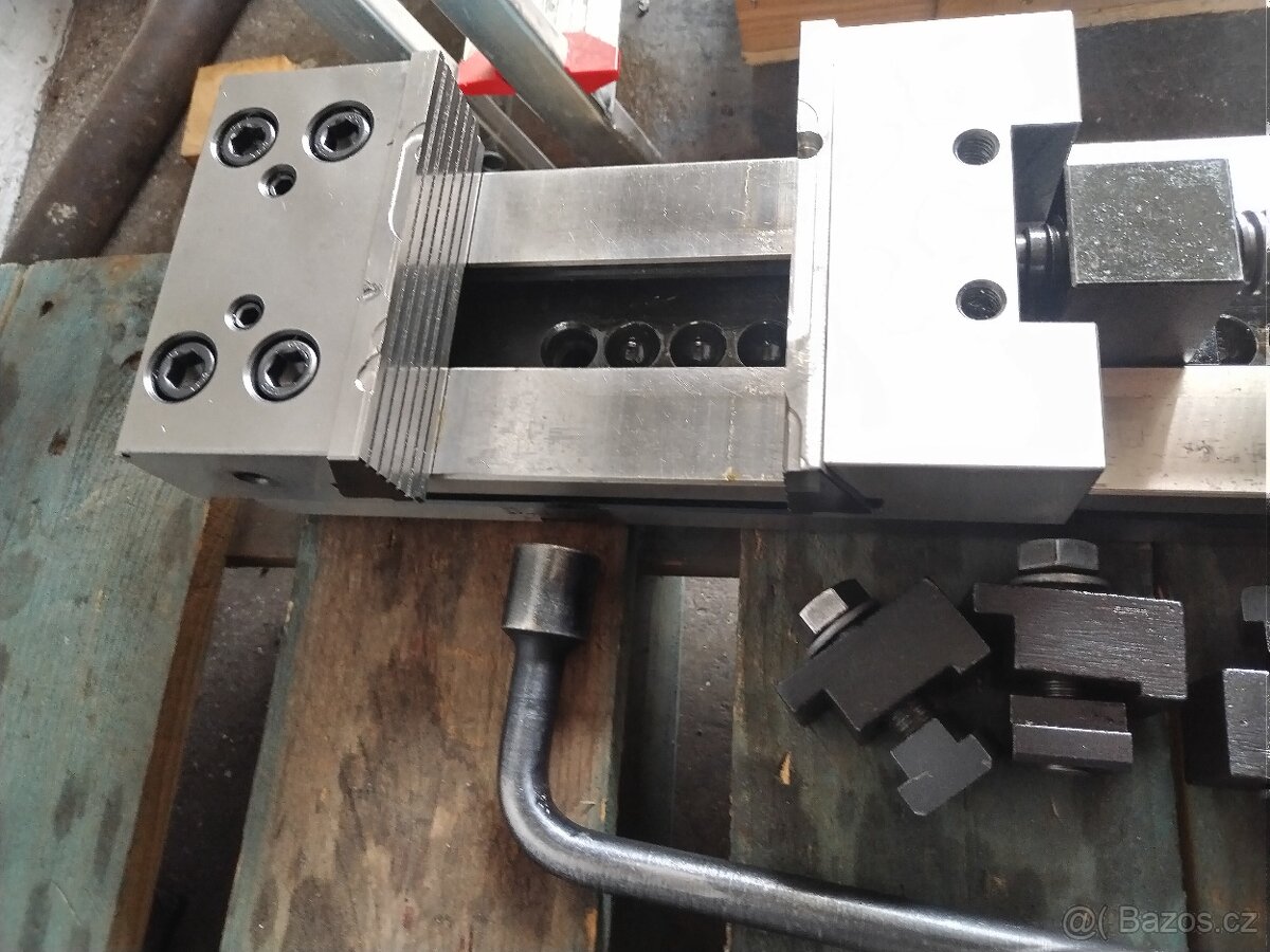 Prodám přesný strojní svěrák VMP-6B, šířka čelisti 150mm,výška čelisti 50mm,max.rozevření 300mm, doraz, klíč. Možnost i s novými čelistmi + 4000,-Kč.