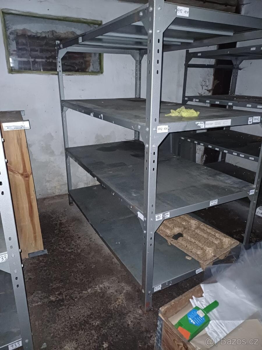 jeden poslední kovový regál s celkovou nosností až 900kg, rozměr: délka 190cm, výška 185cm, hloubka 100cm