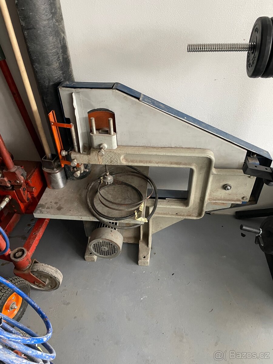 Pila má nově pogumovaná kola. Pila je funkční ale nemá zásuvkovou hlavici a nemohu vyzkoušet. Dříve používaná, ale teď nemám 3f zásuvku. Před pogumováním mi praskal pás. Vyměnil jsem ložiska i lícované šrouby. V krytu je otvor na vysavač.