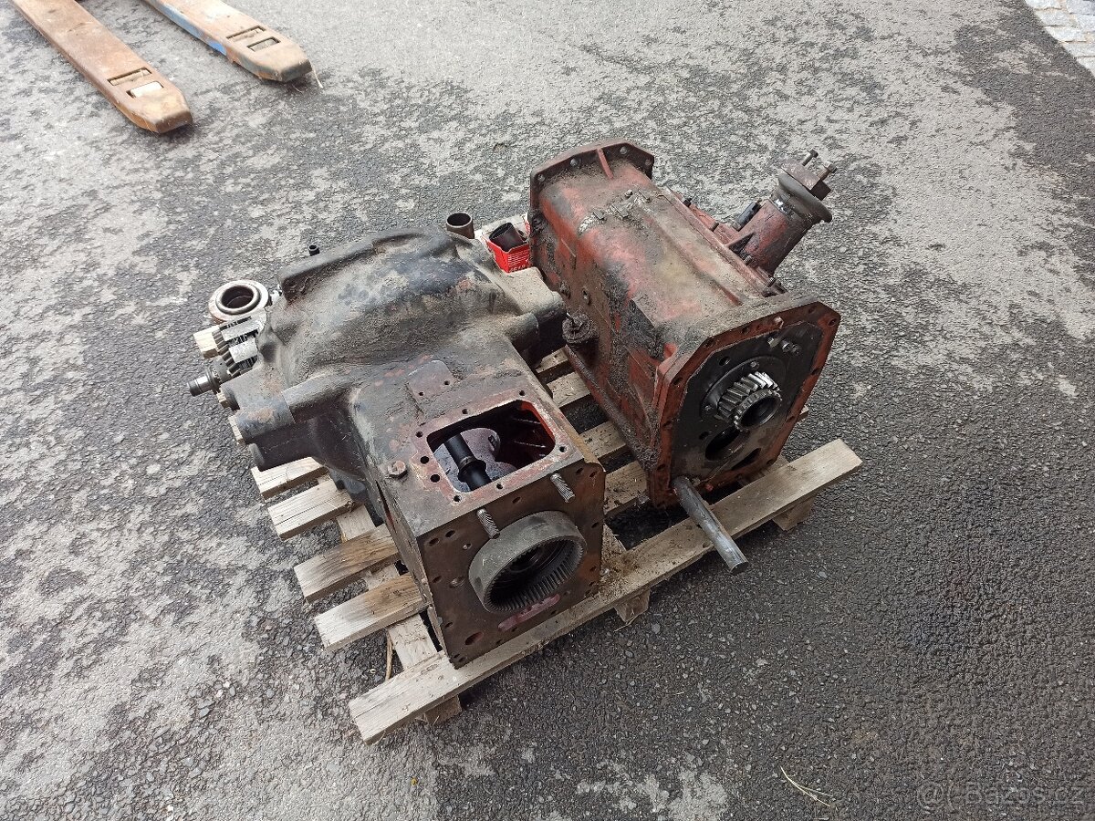 Převodovka 3x3, zavařený obal převodovky. Kompletní včetně spojkové skříně, násobiče a náhonové spojky.