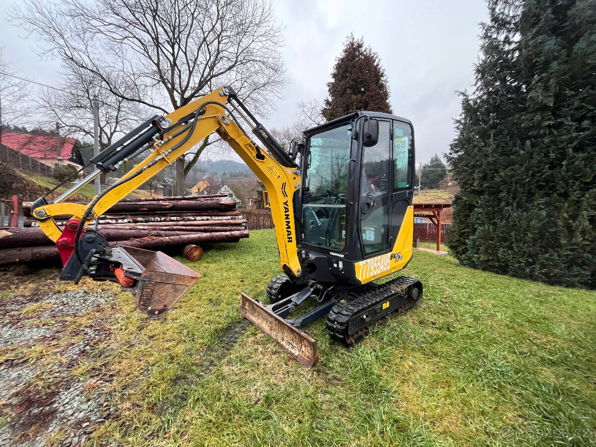 Minirypadlo YANMAR SV17vt Záruka - [30.1. 2026]Předváděcí minirypadlo SV17vt, váha 1,8t, rv 2024, 232 MTH, ZÁRUKA, kabina, hydr.podvozek, dlouhé rameno, okruh svahovka/kladivo, sdružená hydr. čerpadla VIPPS, mech.upínač MS01 v ceně, Lopaty možno dokoupit.Servis prováděn námi. Cena 519.000 Kč bez ...
