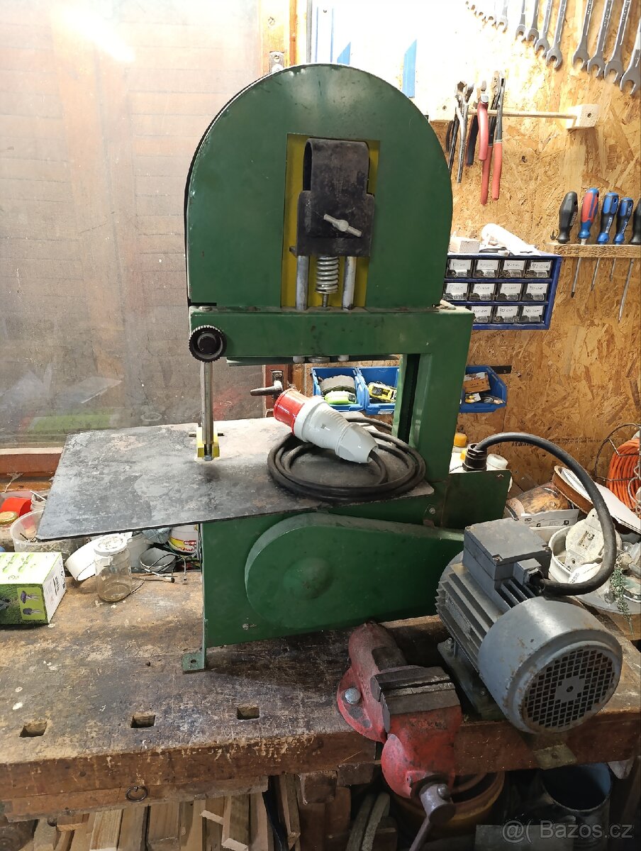 Pásová pila - [8.2. 2026]Pásová pila TOS Svitavy, masivní litinový stroj bez závad, plně funkční, motor 3KW, nové klínové řemeny, litinový stůl 1170x870mm, výška stolu 960mm, největší řezaný dílec 760mm (vzdálenost pilového pásu od ramene), celková výška 240mm, oběžná kola s ...