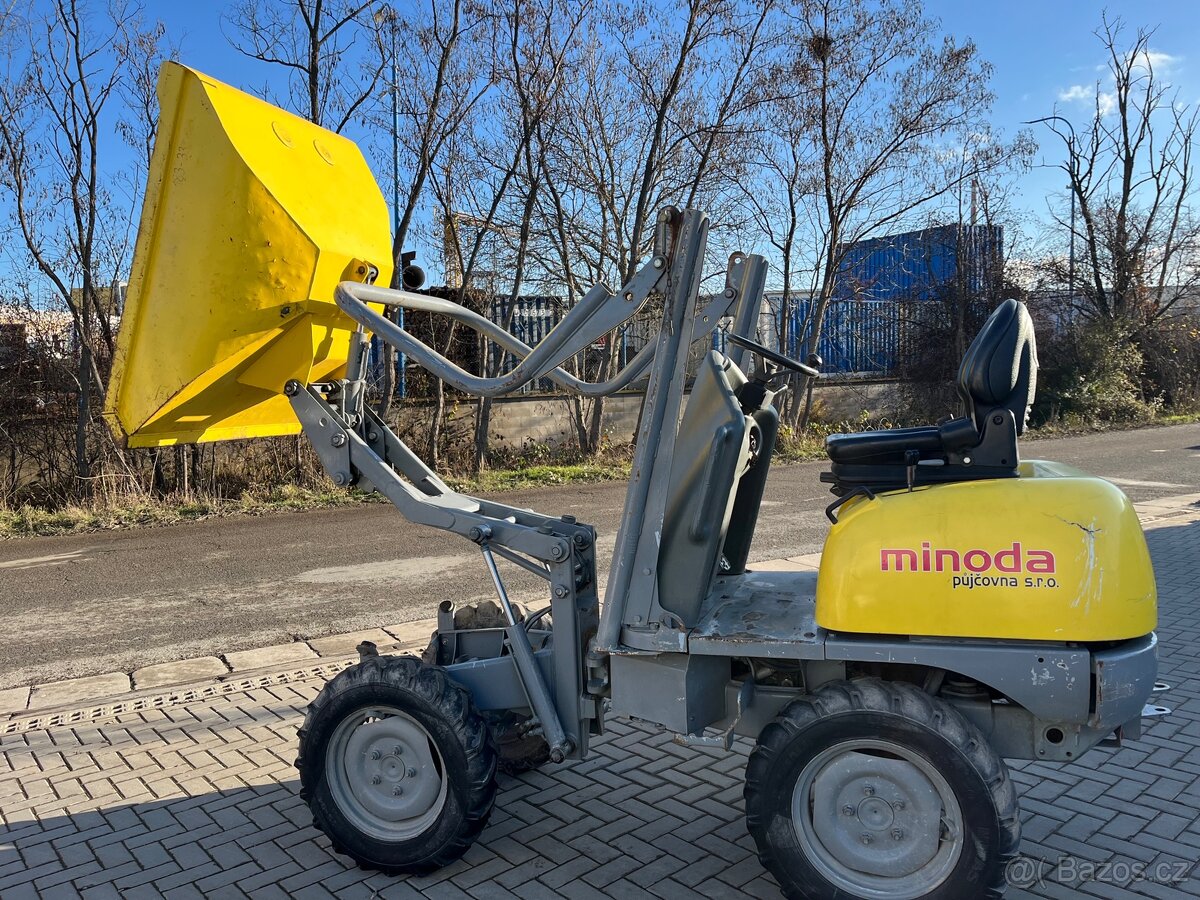 Kolový dempr Wacker 1001 , hmotnost 1215kg, nosnost 1000kg, objem korby 525L, výška vykládky 1,56m, r.v. 2014, najeto 2370 mth. (Dumper,damper)