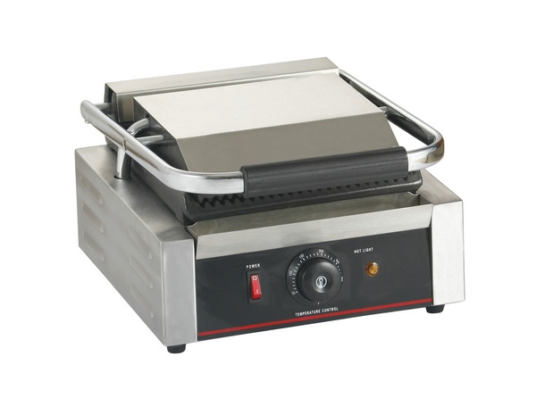 Prodám nový Panini kontaktní gril s vroubkovými plotnami. Vhodné na steaky nebo na Panini plněné bagety. Možno i provedení s hladkou spodní plotnou a horní vroubkovanou.