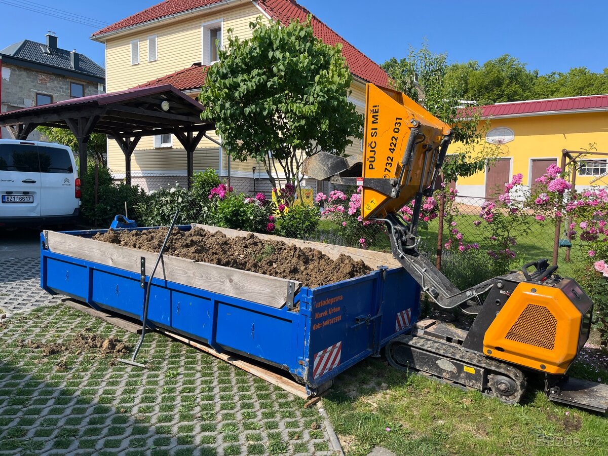 Dobry Nabízím k půjčení pásový samonakládací dumper s nosností až 800kg, naftovým motorem o výkonu 7kw a korbou o objemu 270l