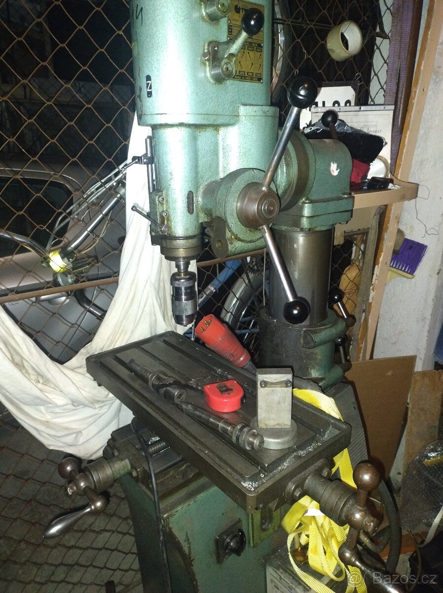 Predam masivnu, kvalitnu vrtackofrezku povodom svedskej licencii, znacky ARBOGA, vyrobenu v Nemecku. Vrtackofrezka je spratna, nezabera vela miesta, rychlosti sa menia v mechanickej prevodovke. Je to zaroven aj zavitorez, smer otacania sa meni pedalom. Stroj je funkcny, tichy chod, upinanie MK3. Motor 3f, dvojotackovy, 1400/2800 rpm. 0.66 kw. Rychlosti je vidiet na stitku.Vzdialenost (svetlost) od stola po spodok sklucovadla je 36cm.Naklapacie vreteno.