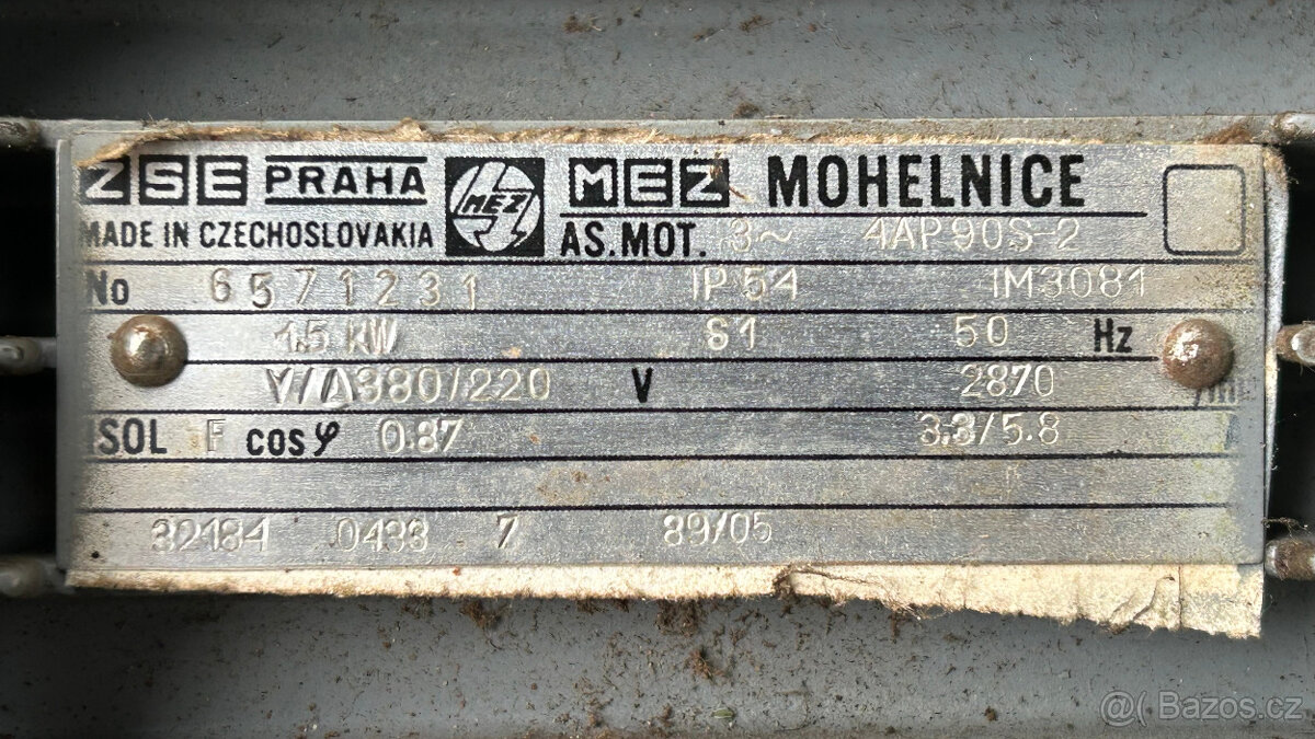 Prodám patkový motor 3 kw 1400 ot - [14.2. 2026]Prodám patkový elektromotor MEZ Mohelnice 3 kw 1400 ot. hřídel 28 mm. cena 3000 kč.