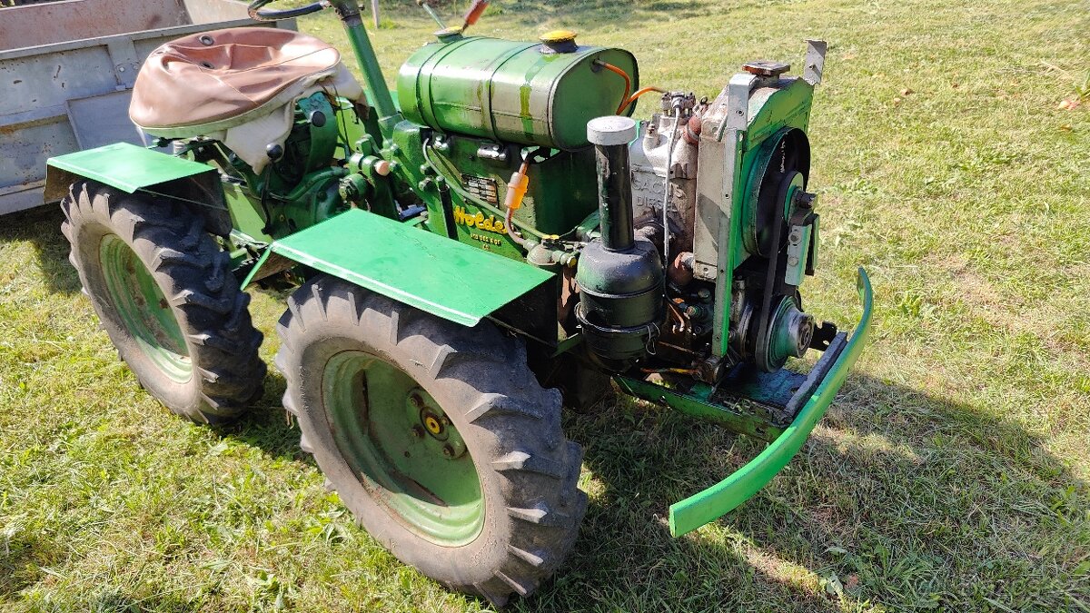 Prodám originální kloubový malotraktor Holder A 10 z roku 1956 s motorem SACHS, naftový jednoválec, dvoutakt vodou chlazený. Má 4 rychlosti dopředu, 2 dozadu, a hydrauliku. Náhon na všechna 4 kola. Vzadu hřídel na pohon techniky. Součástí valník jak je na foto. Cena k jednání 59000,-