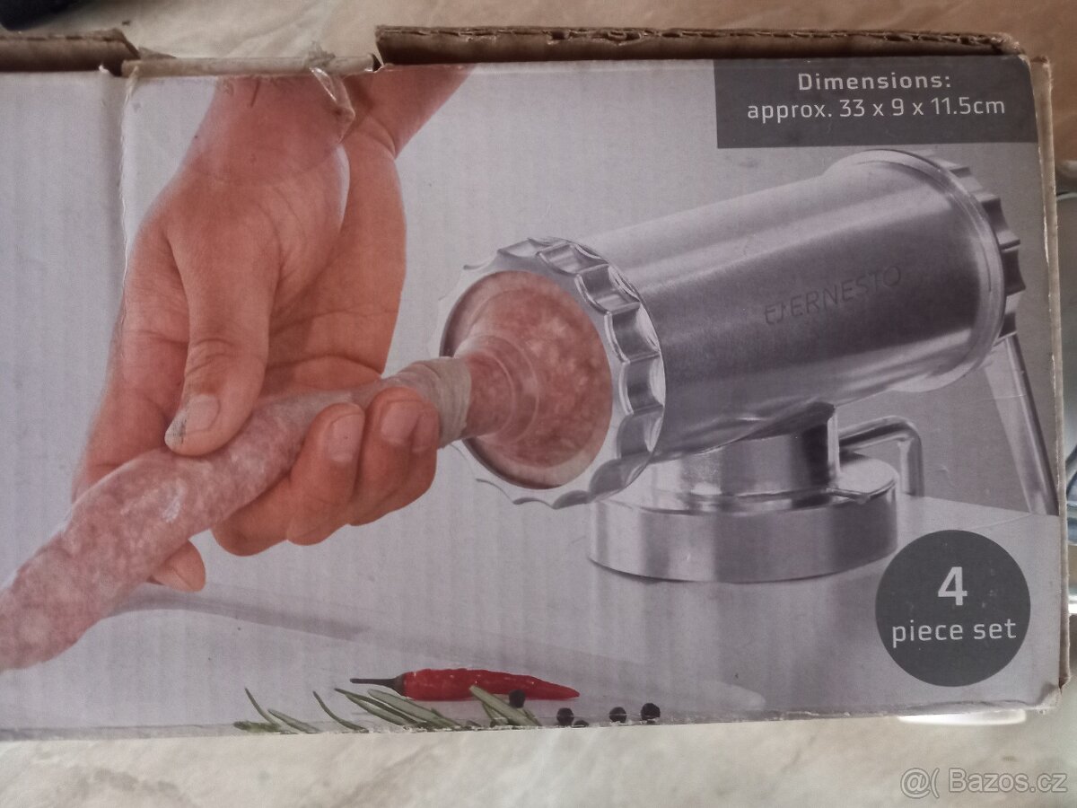 Prodám tuto plničku klobás, velmi málo používanou. Koupil jsem větší.Pro toho, kdo začíná, je lepší než plnit mlýnkem.