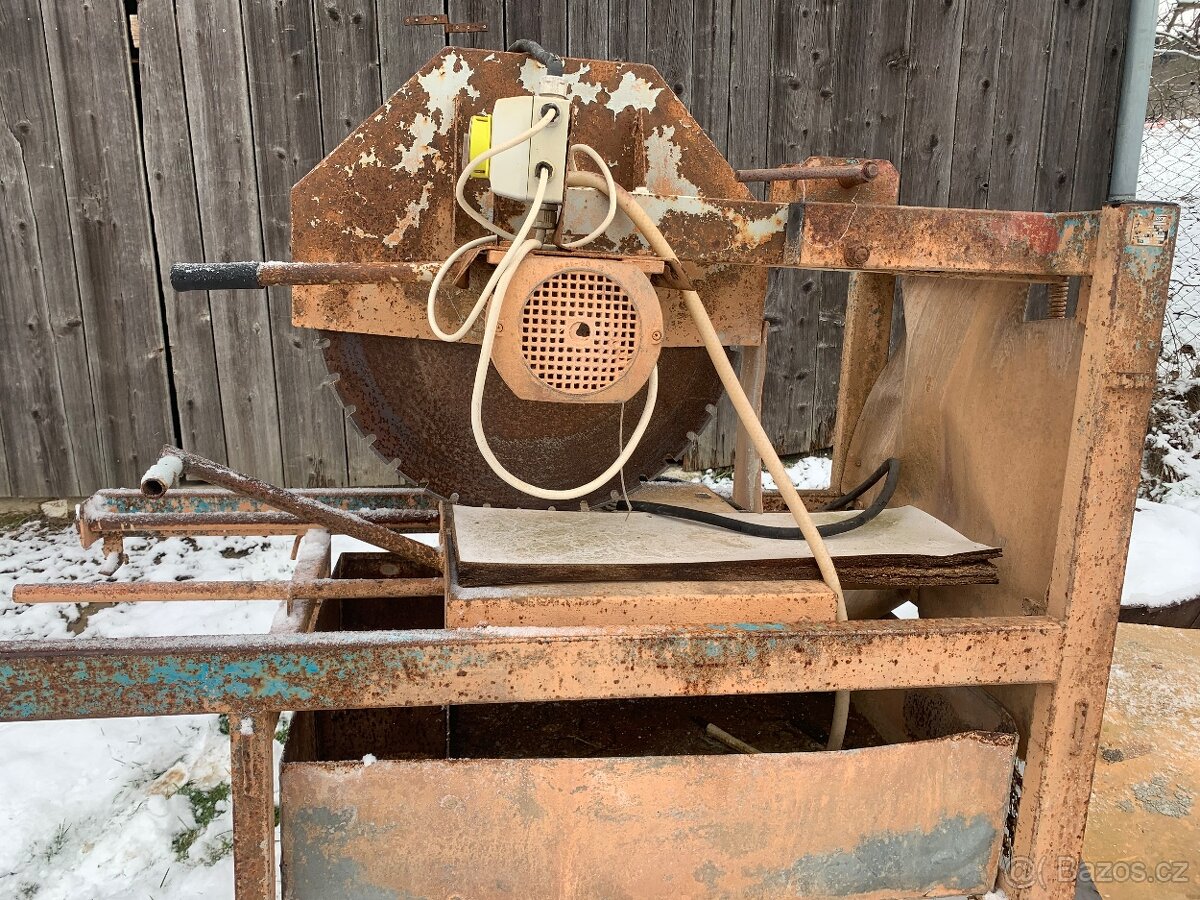 Řezačka na cihly. Průměr kotouče 65 cm.