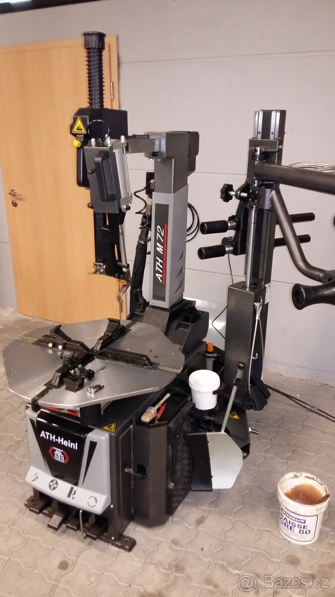 Má také již silnější motor =0,75kW, nerezový odlepovací válec ( páka která odlepuje pneumatiku od ráfku ) a