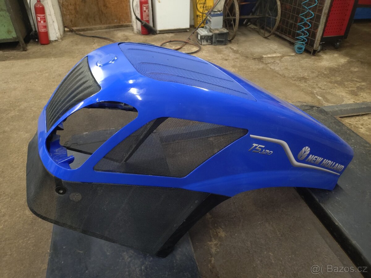 Prodám kapotu na traktor New Holland T5 120. Rok výroby 2025. Kapota byla lehce prasklá, opravena - tmel, lakování.