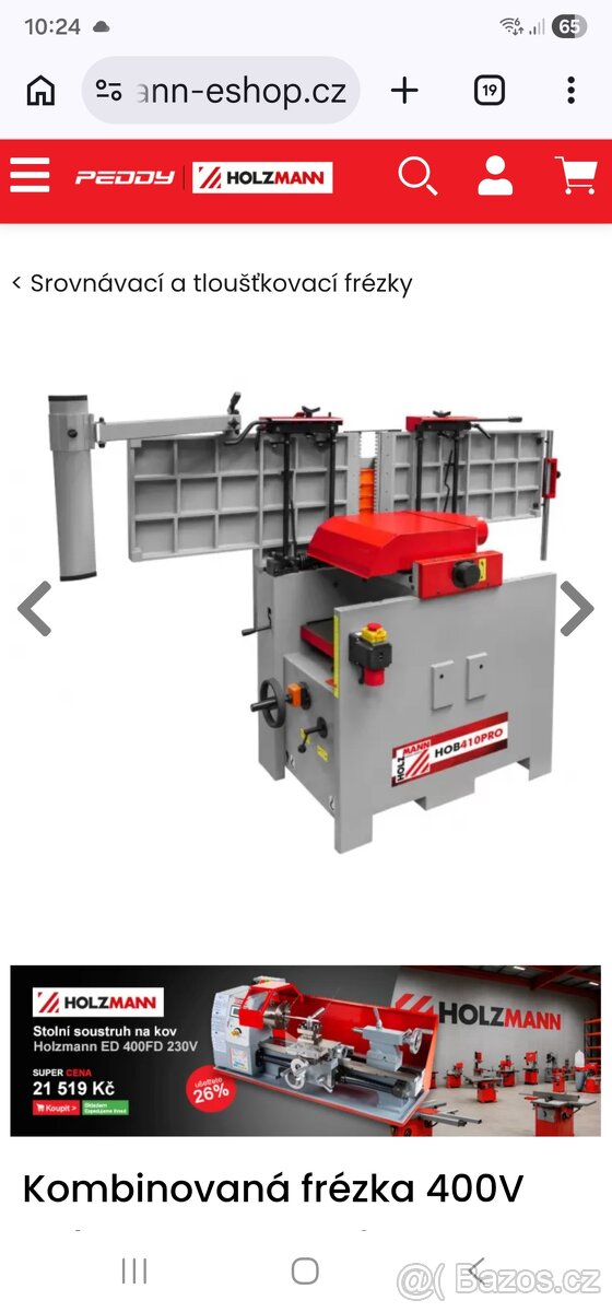 Žiletková srovnávačka s protahem - [10.2. 2026]Kombinovaná hoblovka s protahovačkou se spirálovým hoblovacím válcem s žiletkami HOB305PROSMW Rakouského dodavatele Holzmann. Šířka srovnávání 304mm, maximální šířka protahování 300mm.Délka srovnávacích stolů 1512 mm - litinové, žebrované. Světlost p ...