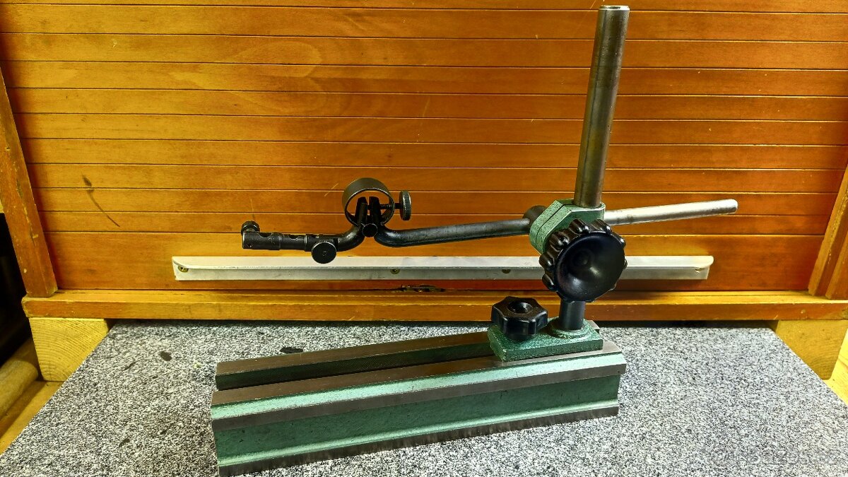 Prodám stojánek Kinex "traverza", použitý, ale pěkný. Perfektní na doměřování přímo na stole frézky, šepingu. Bez úchylkoměru.