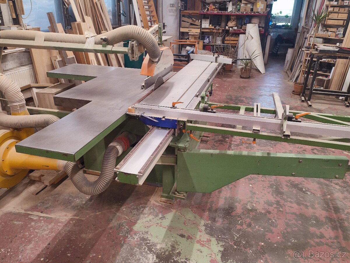Motor 4 kW. Formátovací stůl s teleskopickým pravítkem a ocelovým stolem, který je zavě ...