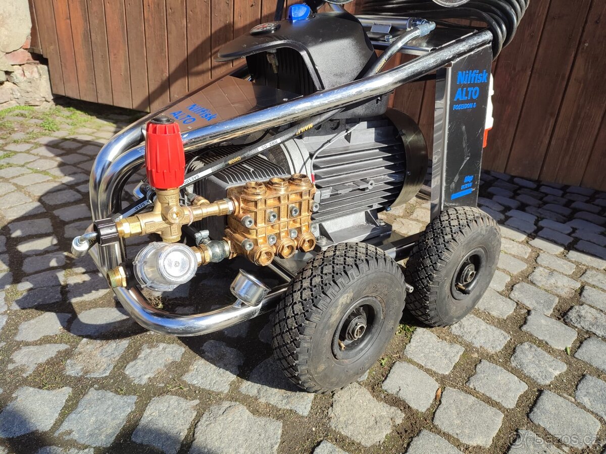 Nabízím vysokotlaký čistič nilfisk 8-125 v perfektním stavu. Jedná se o nadprůměrně výkonný stroj s obrovským průtokem vody 40l/min, pracovní tlak 160 bar, maximalní pripustný 250 bar. Bantamová kola, regulace tlalu. Vhodný do průmyslu nebo zemědělství kde je zapotřebí umývat velké nánosy nečistot (bláto, kejda a td.)