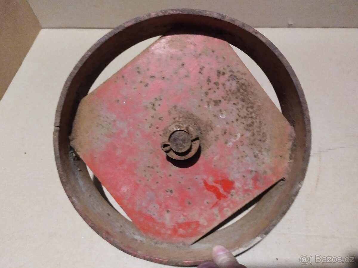 Prodám 4 ks ocelových kol. Nálezový stav. Průměr 250, šířka 60, čepy 20 mm. Prodej jako komplet, kontakt e-mailem.