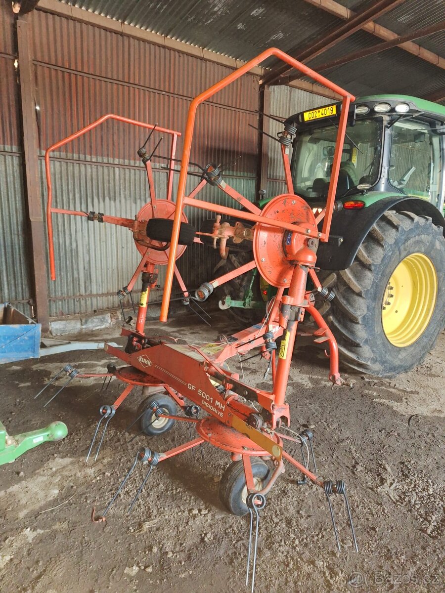 Čtyřrotorový obraceč píce Kuhn GF 5001MH. Bezúdržbový pohon rotorů digidrive. Pracovní záběr 5m. Rok výroby 2007. Plně funkční.