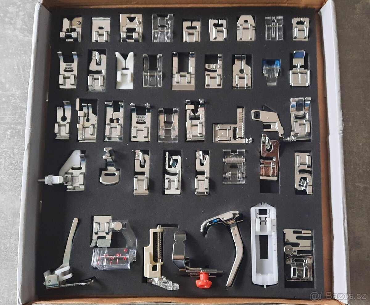 Nabízím k prodeji sadu nových kovových patek k šicímu stroji (42 ks.)