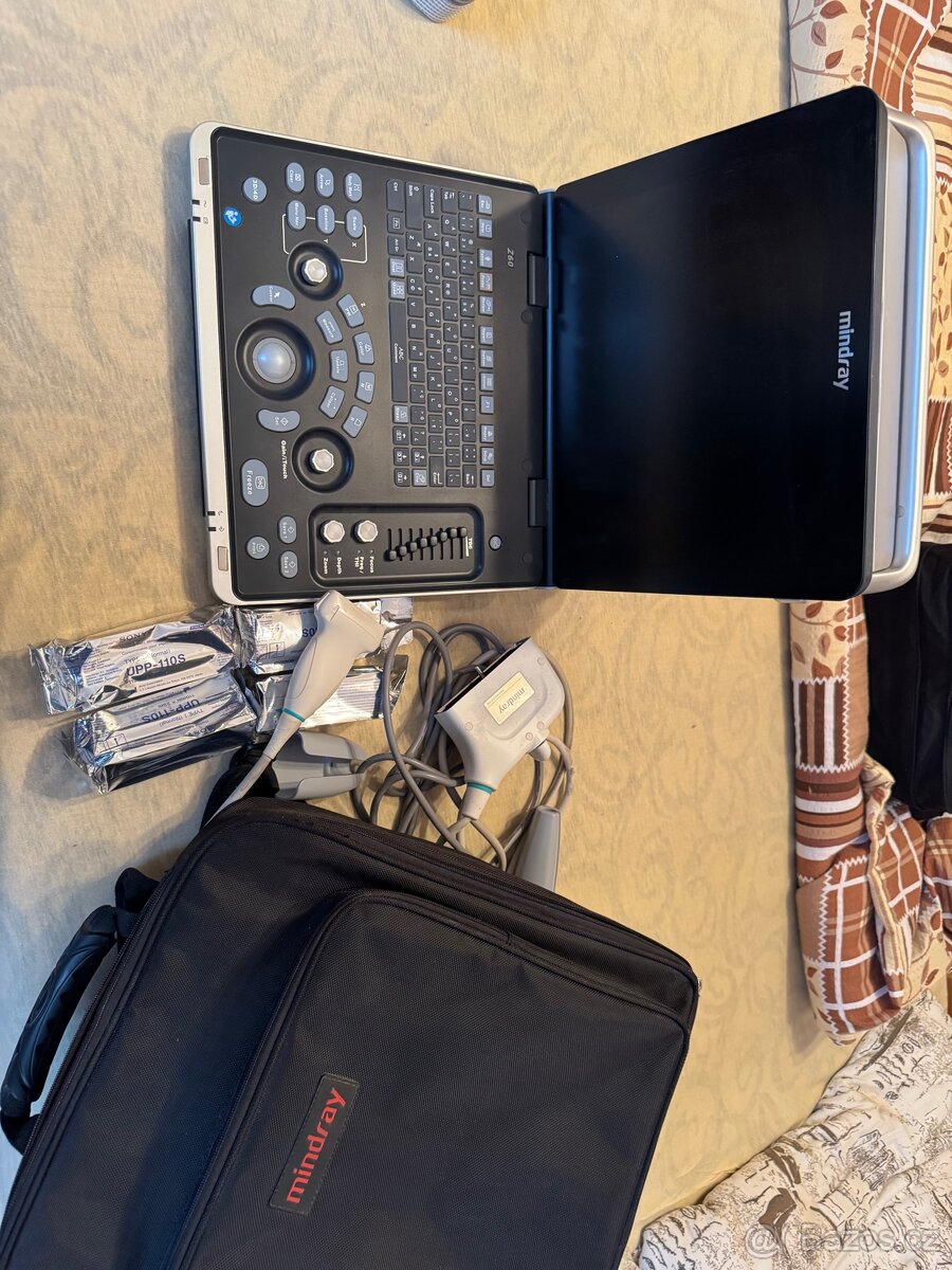 Přenosný ultrazvuk, značka MINDRAY, typ Z60. Barevný doppler, lineární sonda 50 mm + termoprinter. Původní cena 270.000,- Kc. Plně funkční, prodáváno pro ukončení provozu ordinace.