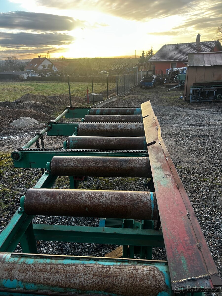 Prodám dopravník na kulatinu délka 3,4x1m vhodné na klady k podávacímu stolu náletoví stav