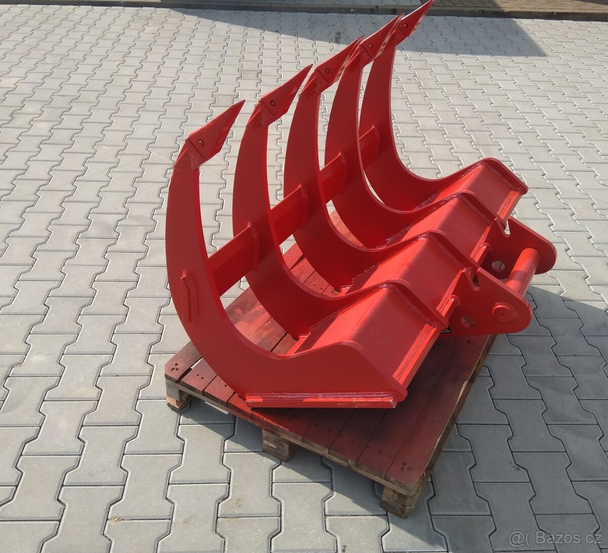 Prodám pětizubý shrnovač klestu, šířka 1.200 mm, uchycení Lehnhoff MS08 Variolock (možno i jiný systém upínání, např. CAT, KOMATSU VOLVO, apod.), materiál Hardox HB 400, zuby systém CAT. Vhodné pro stroj 5 - 10 tun. Více info Ing. Hájek, tel: 602 465 199.