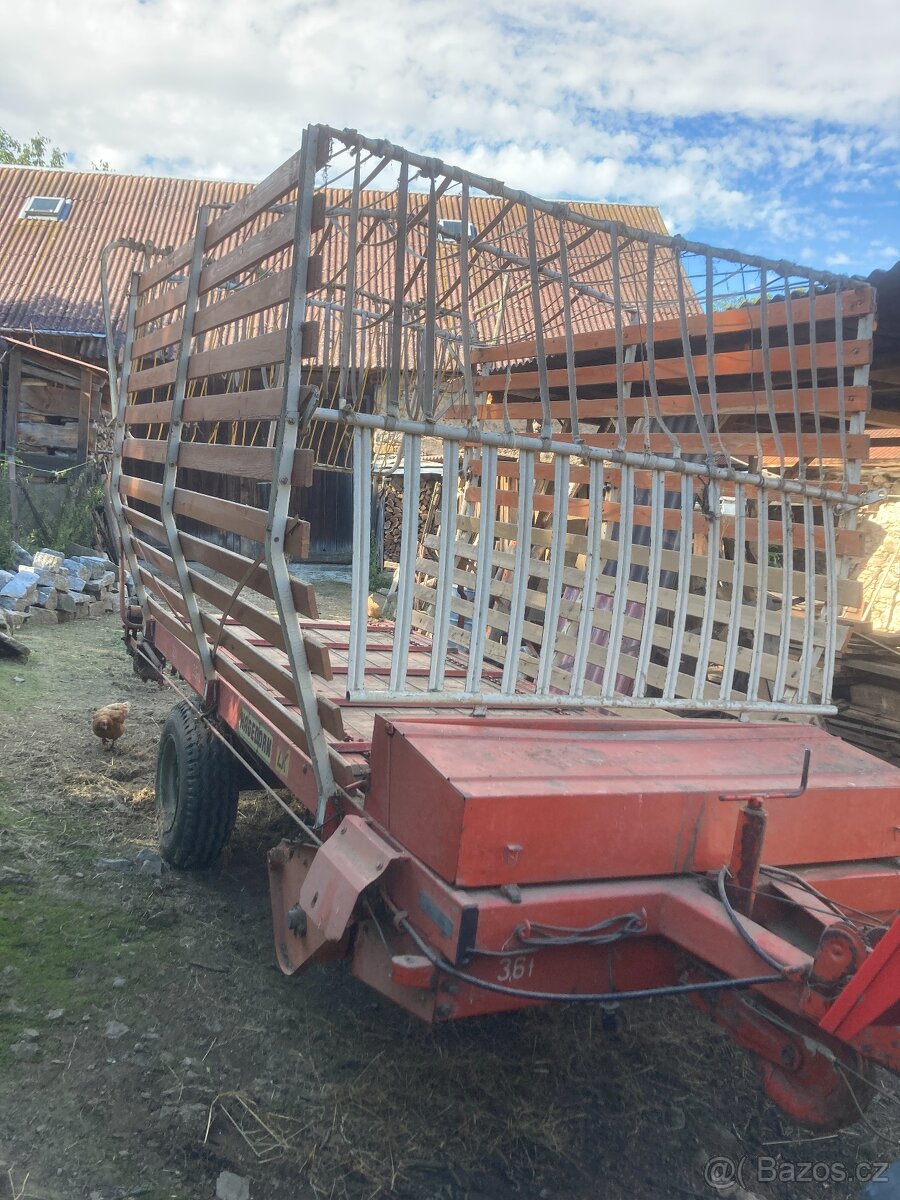 Prodám sběrací vůz za traktor Hagedorn typu Horal v pěkném stavu. Vždy parkován pod střechou. Vše funkční - včetně řezače, málo používaný, mechanický brzda, náhonový hřídel. Za příplatek lze prodat i senomet. Při rychlém jednání možná sleva.